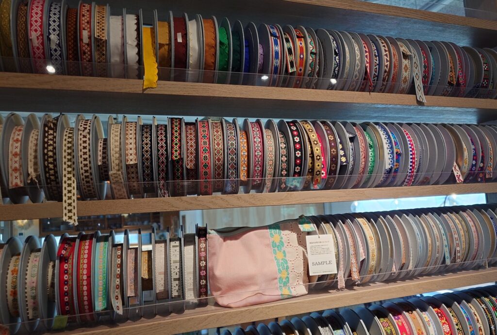 ショップでは、レピヤンリボンの直営店としてチロルリボンや小物雑貨を中心に、ハンドメイド作家さんの作品や布・ボタンといった手芸用品、さらには道具まで幅広く取り扱われていて見ているだけでもわくわくするような場所です。